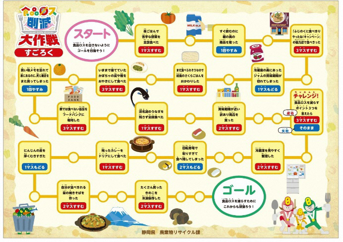 昨年度は、11月10日に食品ロス削減啓発イベント@イオンモール浜松志都呂や、10月静岡市中央体育館でフードバンクのイベントを行いました。子供から大人まで幅広い世代が楽しみながら食品ロスについて学ぶことができる内容が盛りだくさんでした。静岡県オリジナルのすごろくや、クイズラリーなど多くの学びと面白みがあるため、子供も保護者の方も身近に食品ロスの問題を感じられるのではないでしょうか。
