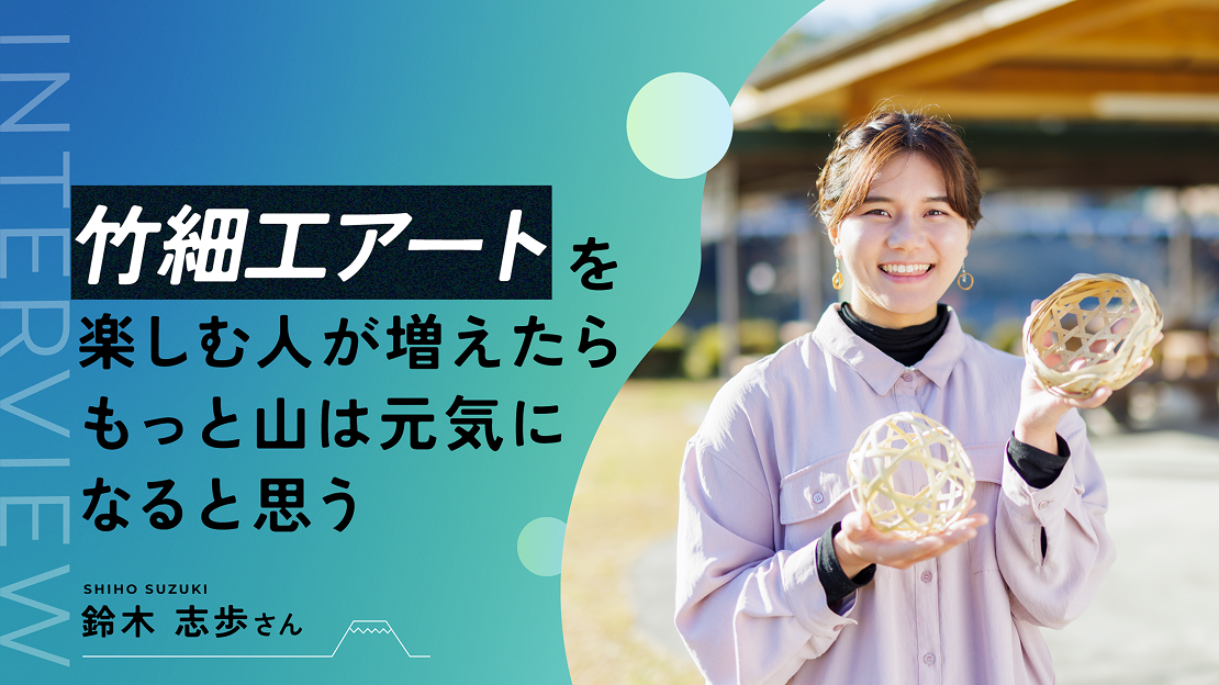 山あいの自然豊かな町、駿東郡小山町。竹細工アーティストの鈴木志歩さんは、小学校から高校まで、この町で育った。