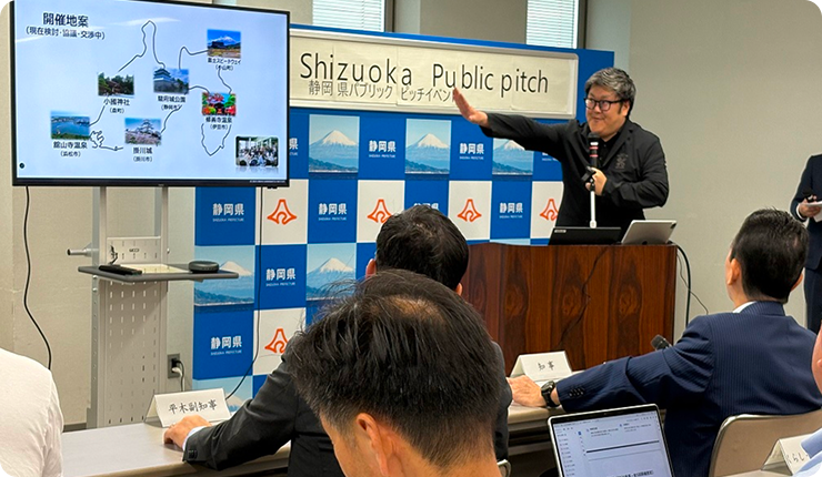 県民のウェルビーイングを高めるためには、県だけで政策を立案するのは限界がある。そこで企業や自治体など多様な主体との共創にも注力している。象徴的なのが、民間企業からの事業提案の募集だ。県民の幸福実感の向上につながるアイデアを広く募ったところ、23社から応募があり、そのうち5社が、知事に直接提案する「静岡県ウェルビーイングパブリックピッチ」に臨んだ。民間の発想や実行力を取り込み、新たな解決策につなげたい考えだ。